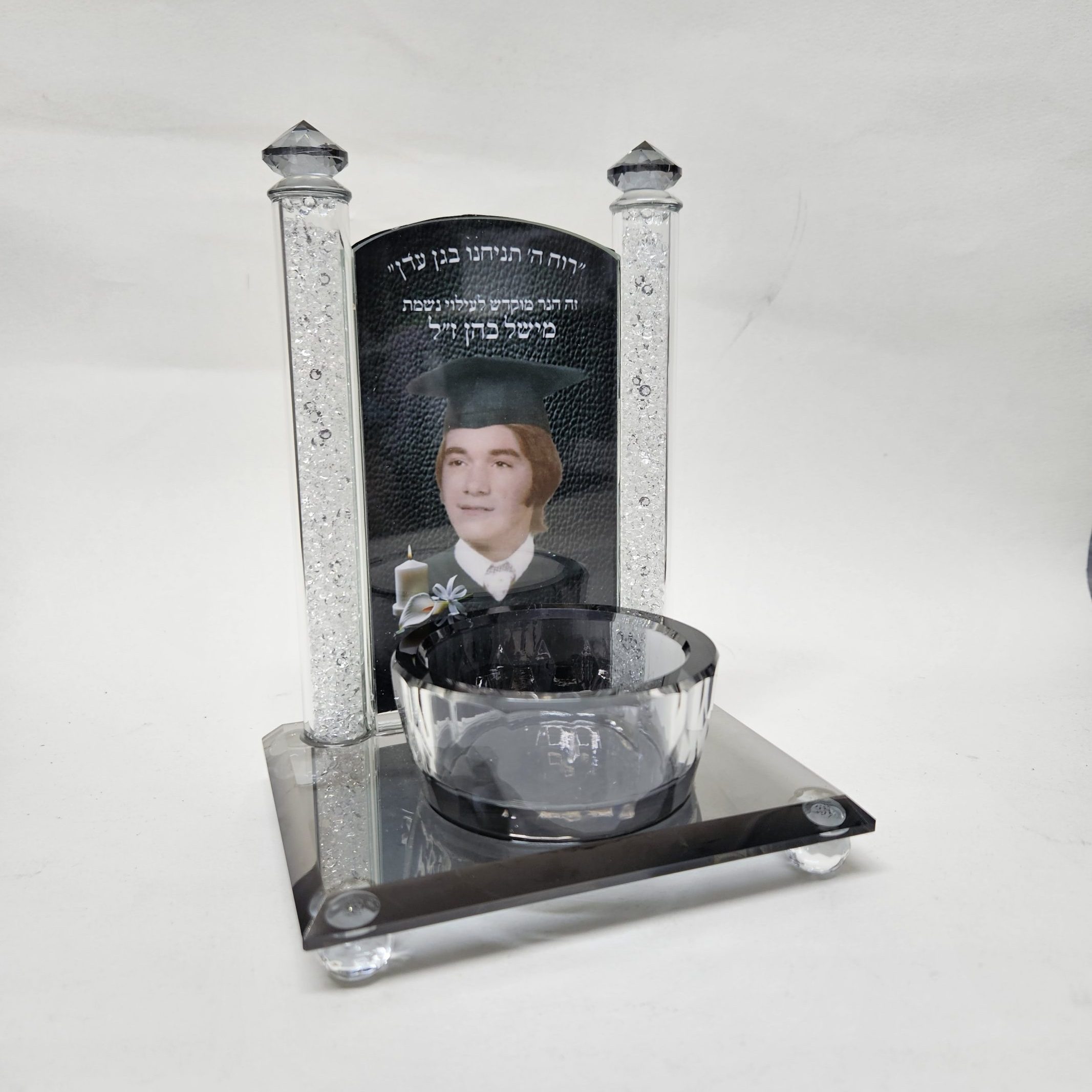 פמוטי הזיכרון של MEMORIEZ נוצרו מתוך רגישות והבנה עמוקה למשמעות ההנצחה. העיצוב האלגנטי והנקי משלב קריסטל איכותי עם חריטה אישית, ויוצר פריט הנצחה מכובד המשתלב בטבעיות בכל חלל, על שידה, מדף או פינת זיכרון ייעודית.